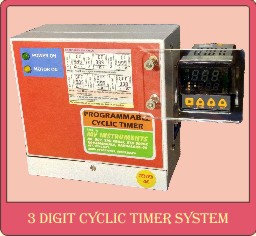 - The system comes with programmable electronic module which has 3 digit 7 segment display and 4 push switches for programming and assigning the time values.