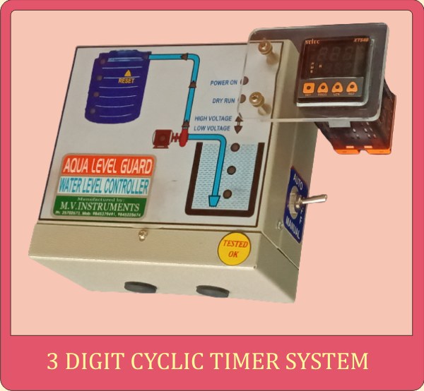 This model is a cyclic timer incorporated to the Water level controller which is suitable for Borewells with limited