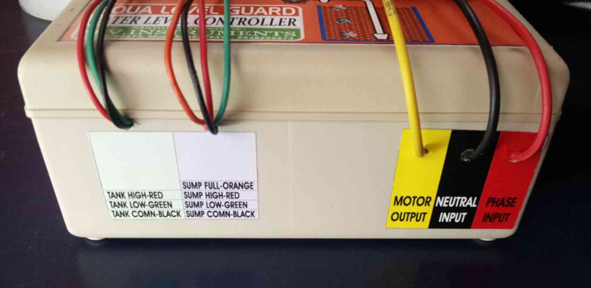 - Set the level of Pump ON sensor (Green wire) at the Half level of the Tank.