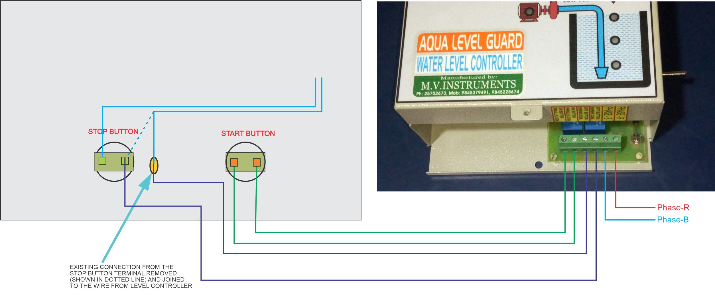 - Set the level of Pump ON sensor (Green wire) at the Half level of the Tank.