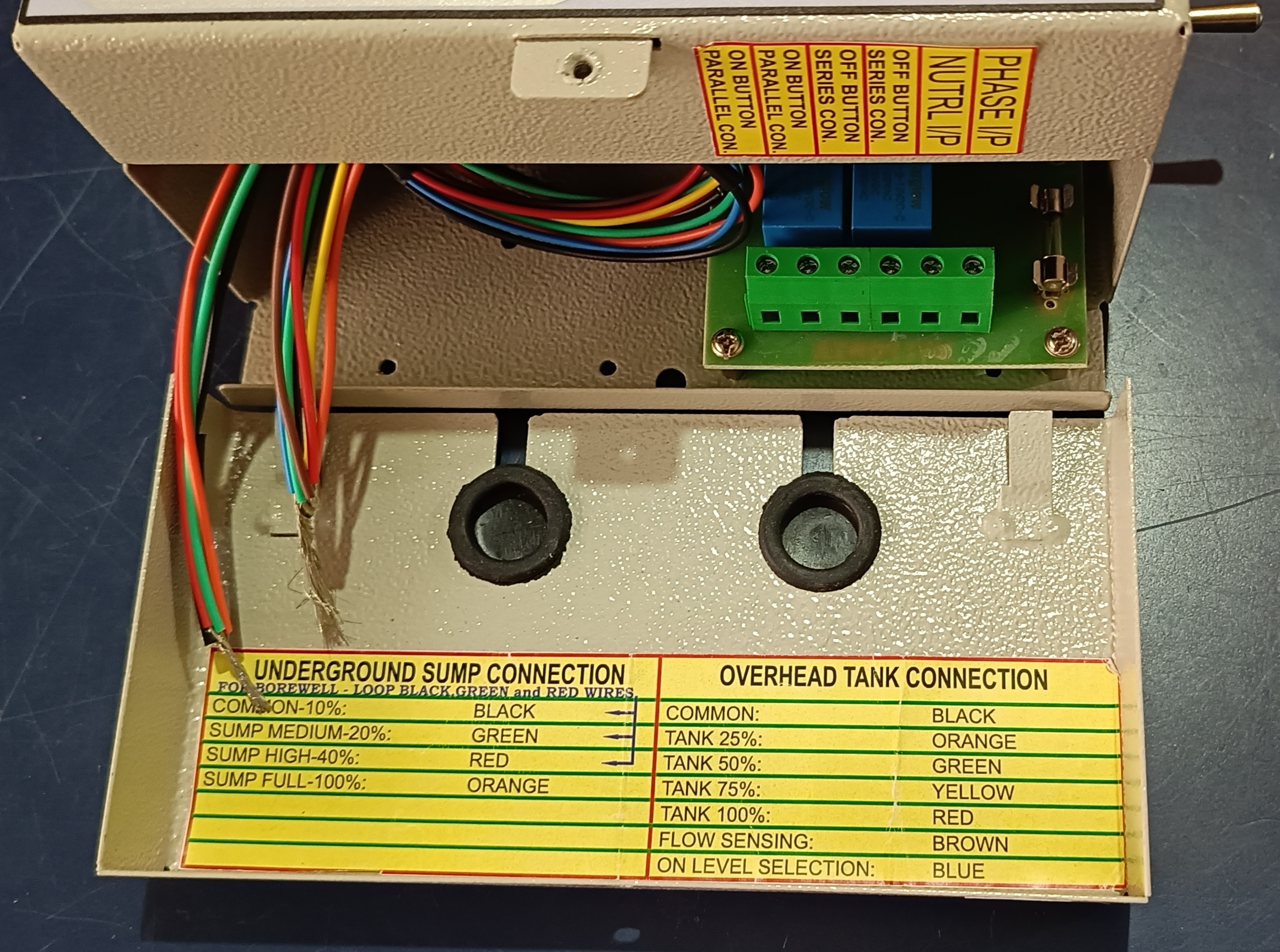 - Set the level of Pump ON sensor (Green wire) at the Half level of the Tank.