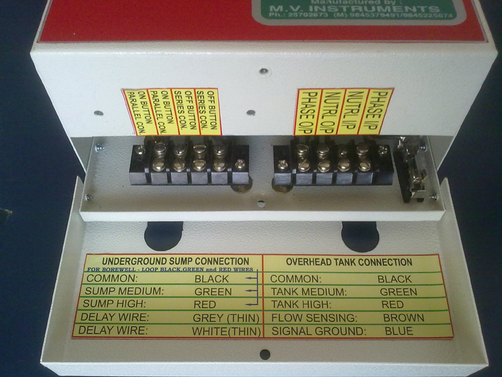 Installation of our water level controller system is not a major task and we have made the system in such a way that it is possible to install the system yourself with minimum electrical knowledge or with the help of a simple electrician. The task of installation comprises of two parts, the Power Connection and the Sensing Connection.