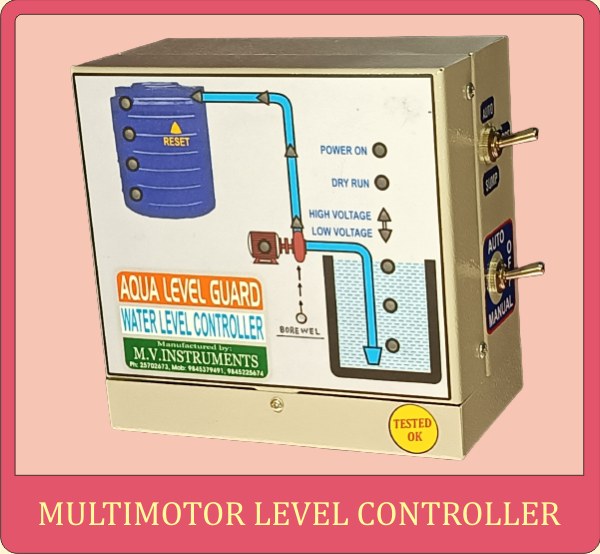 This model is a Dual control type Water level controller system which can control Sump motor as well as Borewell motor with Automatic Changeover Technology and Built-in advanced 'Pumpset Protection Circuitry'. This model comes with Two Year Guarantee.